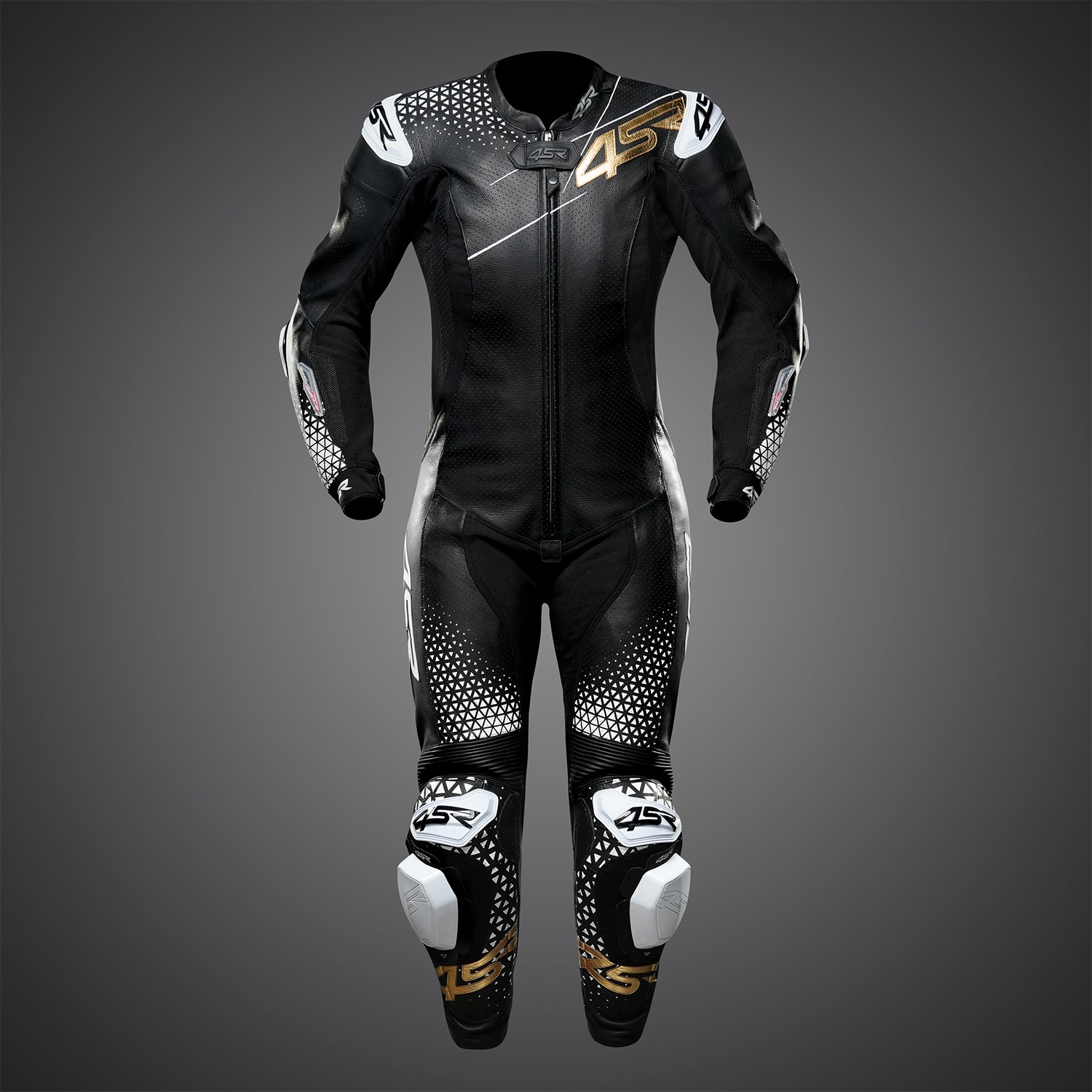 - kombinéza je kompletně vybavena závodními chrániči, včetně hrudního a páteřového chrániče