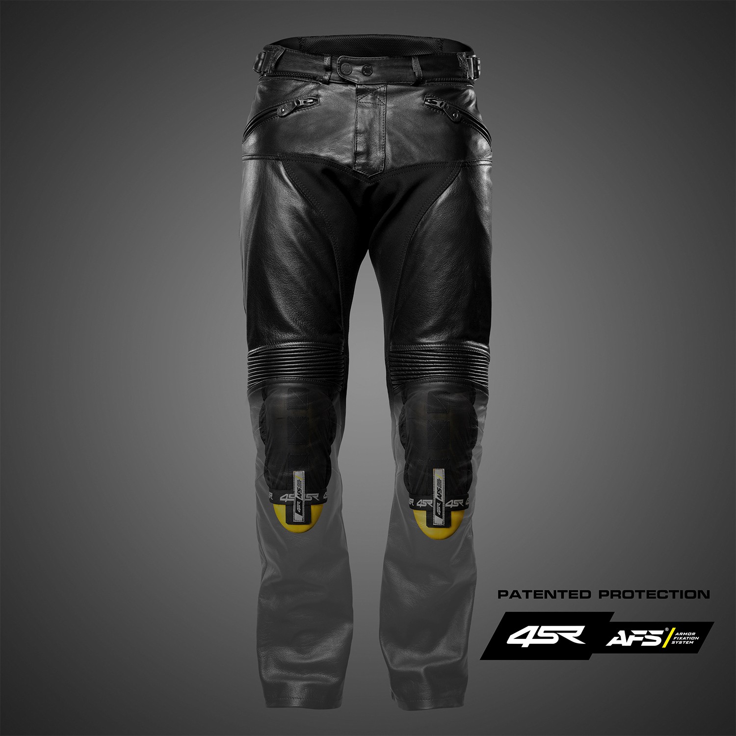 Poprvé v historii kožených kalhot 4SR používáme náš patentovaný systém A.F.S. – Armor Fixation System® pro uchycení 3D tvarovaného kolenního a holenního chrániče. Chránič není vložený jen v klasické kapse ani připnutý napevno. Je uložený v samostatné vnitřní „ponožce“, která je všitá do nohavice, ale není na jejím pohybu přímo závislá. V této konstrukci je chránič výškově nastavitelný podle postavy jezdce. Kombinace odděleného uchycení, 3D tvarování chrániče, ergonomického střihu a flexibilních panelů nad koleny zajišťuje, že kolenní chránič zůstává přesně tam, kde má být – při aktivní jízdě i při sundání nohy ze stupačky. Není potřeba ho neustále rovnat po každém sesednutí nebo přesunu v sedle.